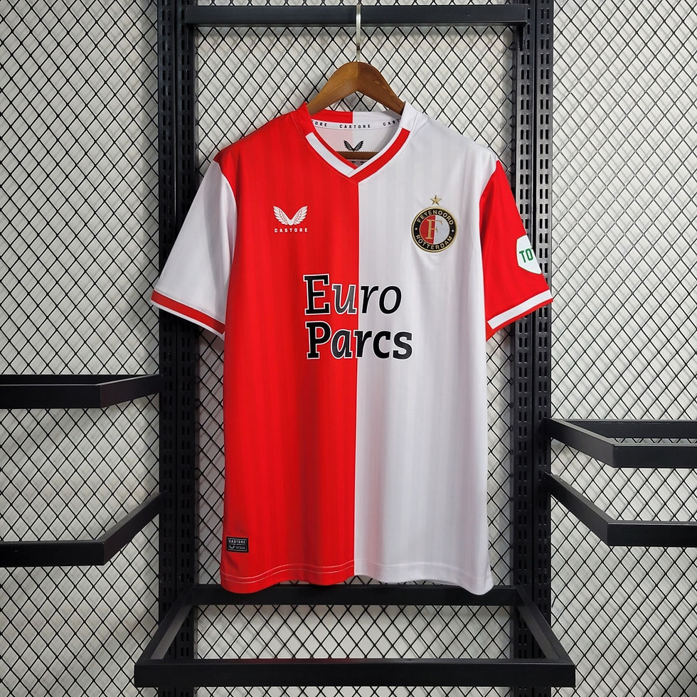 Camisa Feyenoord Home 23/24 - Torcedor Castore Masculina - Branco e Vermelho